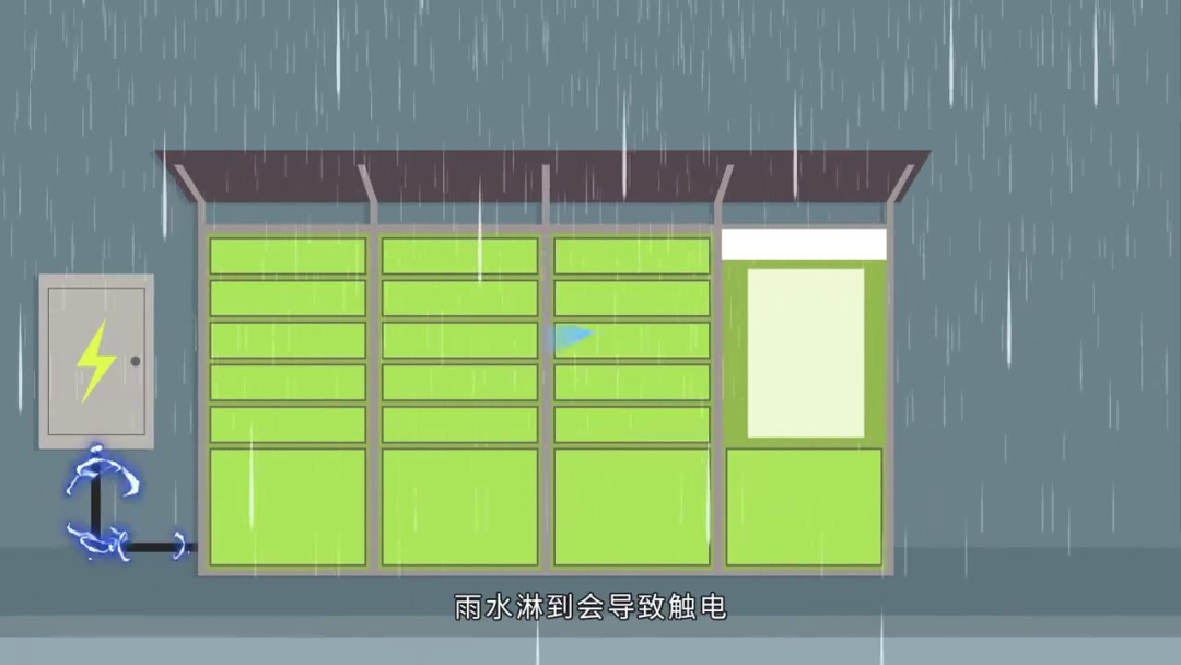 雷雨時(shí)接通電源的快遞柜可能存在安全隱患,雨水淋到會(huì)導(dǎo)致觸電。